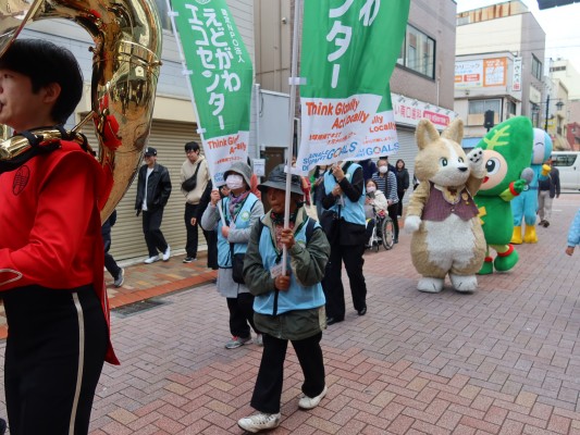 令和7年11月16日(日)、平井親和会商店街にてエコ啓発パレードが実施され、エコセンターも幟を掲げてパレードに参列しました。